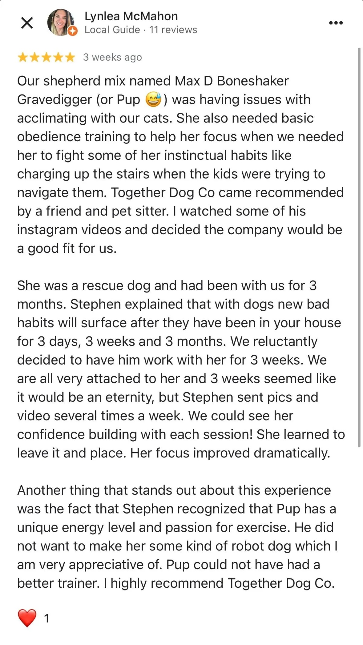 🐾 Next-Step Training Recommendations If we’re the right fit, you’ll know exactly what comes next to turn your dog into the well-behaved pet you’ve always wanted.